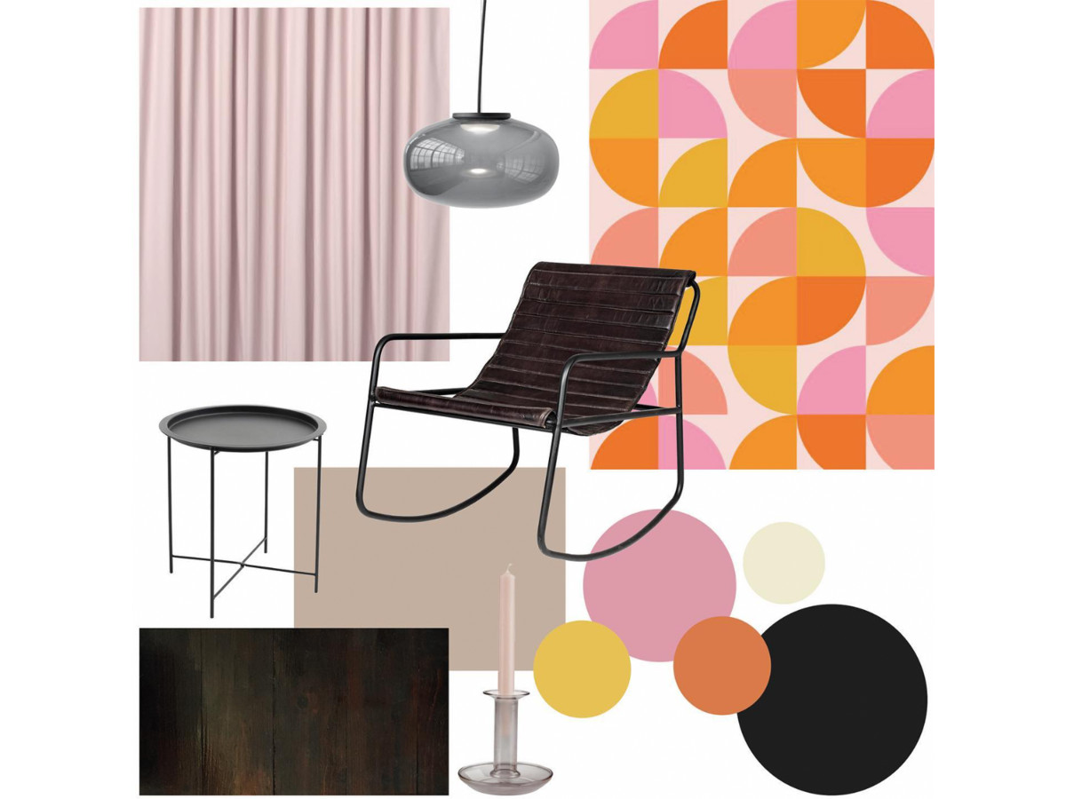 Gestaltung der "kalten Ecke" in einem Bremer Haus. Große geometrische Muster lassen den Raum größer und höher wirken und sorgen für einen Hingucker in der Wohnung. Passend dazu fügt sich das minimalistische Mobiliar ein und stellt einen Gegenpol zum Bunten dar.